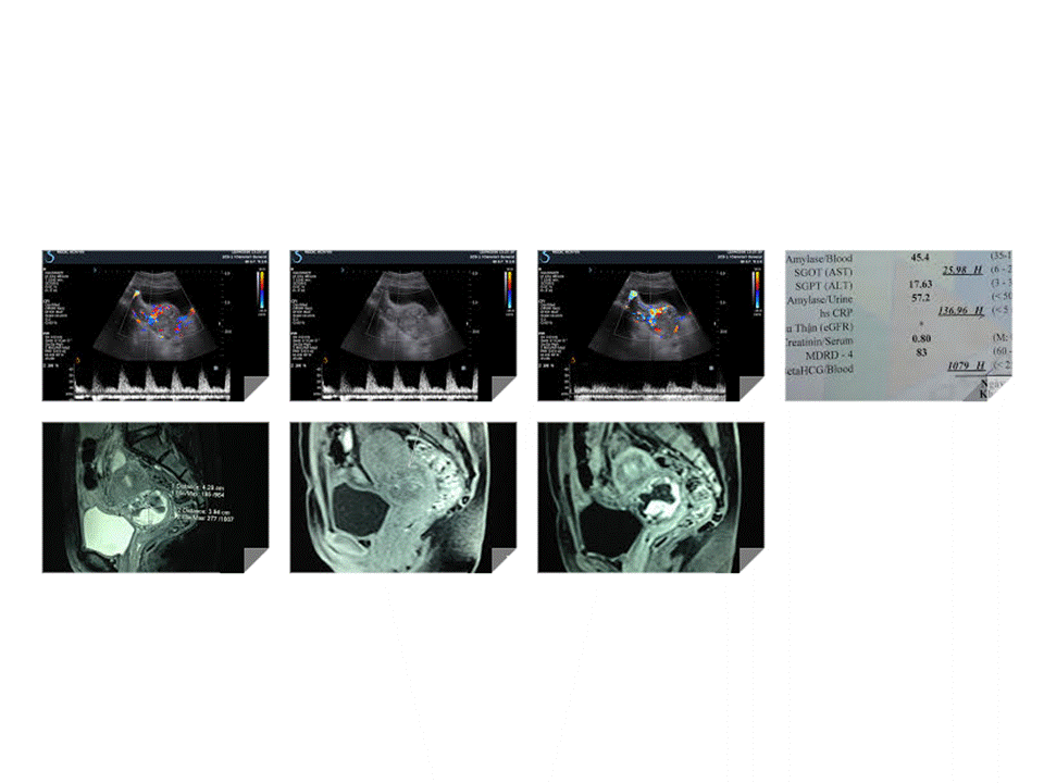 Ultrasound again detected one hypervascular mass at the neck of uterus ( see 3 USimages).