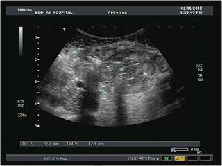 Ultrasound of abdomen detected an abcess in minor pelvis which was thought to be an appendiceal abscess.